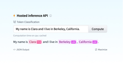 With a single command, you can upload any pipeline package, with a pretty model card and all required metadata auto-generated for you. The inference API currently supports NER out-of-the-box and you can try out your pipeline interactively in your browser. You'll also get a live URL for your package that you can pip install from anywhere for a smooth path from prototype all the way to production!